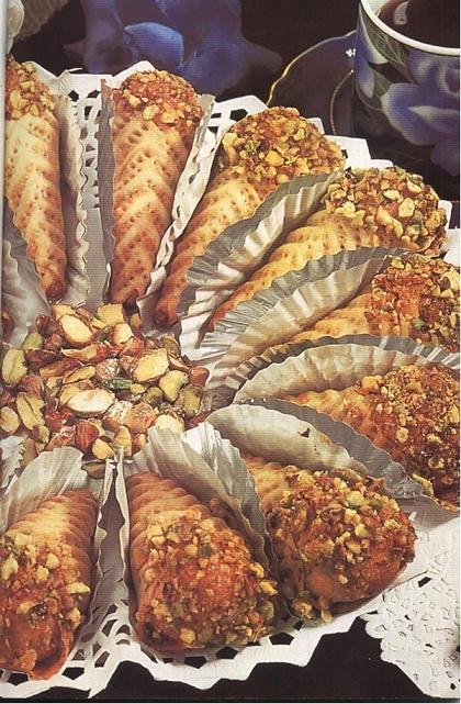 بعد اخراجها من الفرن نضعها في العسل مباشرة و نزينها من فوق بقليل من اللوز او الفستق