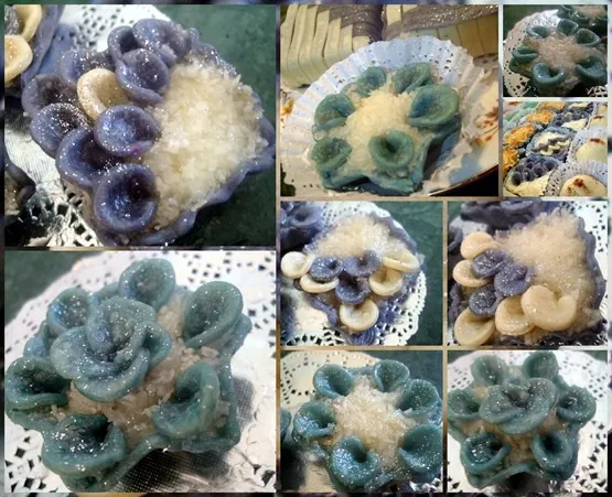 ممزوج بشوية ماء ونضع الملون الازرق ونمزج حتى نتحصل على عجينة متماسكة