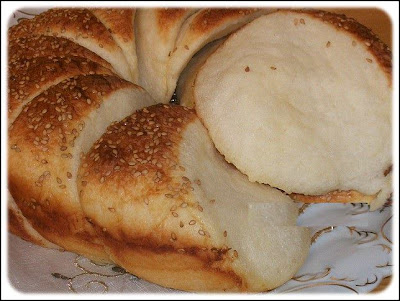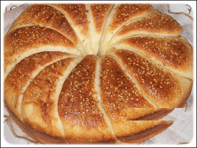 سيبوها تختمر من 20 د لنصف ساعة ثم ادهنوها بالبيض و رشوا عليها سمسم و ارسلوه للفرن من من 15 ل 25د