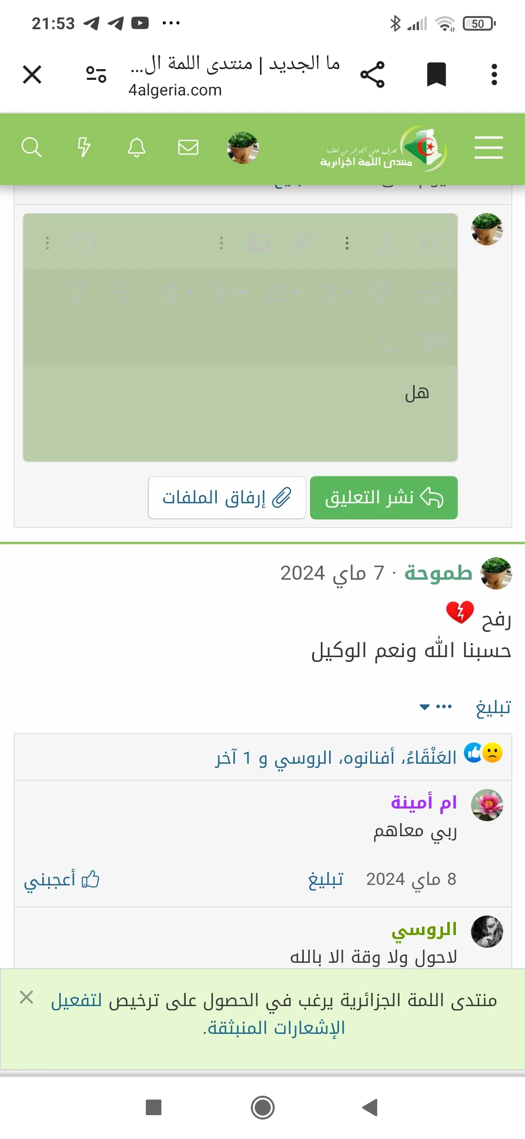 هل يوجد مشكل عام أم أن المشكل عندي فقط كنت أحاول كتابة موضوع ولما نروح للتعديلات يخرجلي كلش بالشفاف و إن صح رمادي فلا تظهر عندي خيارات حجم الخط و اللون و غيره