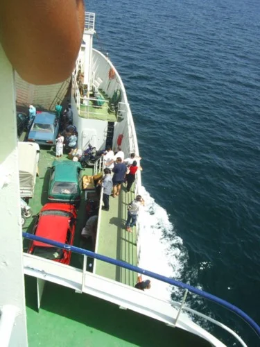 تبعد جزيرة قرقنة على المهدية الي توجد فيها درنا 80 كلما صفاقس و من صفاقس الي جزيرة قرنا بل (بطاح) يعني بابور صغير ممكن ساعة في البحر كان الجو جميل جدا بصراحة و حسيت روحي خايف شويا على خاتر بديت ندوخ من الباور