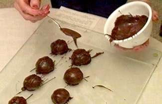 نضع عليها خطوط من الشكولاته السايحه بواسطه الملعقه