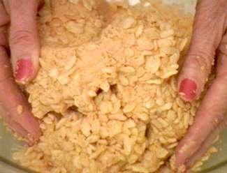 نخلط النسله او زبده الفول السوداني مع البسكوت المطحون والزبده