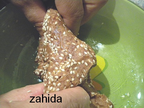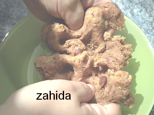[FONT=tahoma,arial,helvetica,sans-serif]Confectionnez des boules avec la farce de dattes,pistaches,noix…plus petites que la boule de pâte.[/FONT]