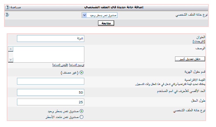 من لوحة تحكم الادارة -> حقول بيانات الهوية -> اضافة حقل جديد في الملف