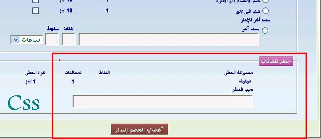 نكتب سبب الحظر ثم نضغط على أعطي العضو إنذار