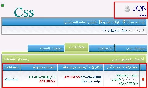 ندخل لوحة تحكم الادارة ثم مخالفات العضو ثم نختار إدارة مخالفة العضو