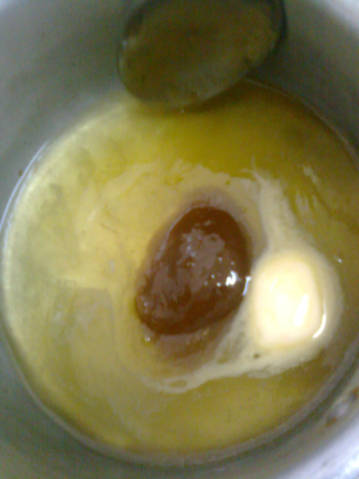 + ملعقة كبيرة عسل خفقتها جيدا بالمضرب الكهربائي حتى حصلت على كريمة خفيفة