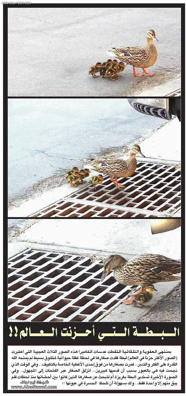 البطة التي احــــــــــــــزنت كل العالم السلام عليكم بسم الله الرحمان الرحيم سبحان الله الكل مهتم بابنائه