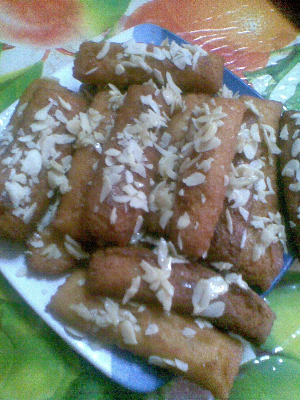 نضع البيض + السكر + فاني ونخبطهم مع بعض+ الزيت و عصير البرتقال و نخلط مع بعض + الفرينة وخمارة والملح حتى تتلم العجينة تكون عجينة متماسكة,نحلها بسمك 5مم و نقطع بالجرارة اصابع طوال نقليهم يحمارو ,مبعد نعسلهم ونرشهم باللوز ايفيلي او نرمدهم بالسكر قلاسي هي سهلة جدا في التحضير اتمنى تعجبكم.