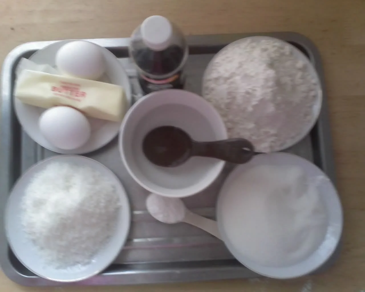 ــــ نخلط الفرينة والخميرة مع بعض ونضيفها لخليط الاول تكون العجينة اوالخليط ثقيل نوعان ما لي هاذا نضيف الماء وفي الاخير نضيف نواد كوكو ..