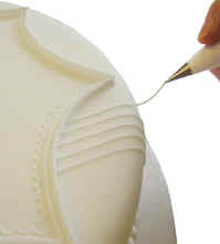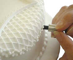 نمر للجوانب على فكرة ممكن تشوفون الشغل صعب بس هو سهل لان عجينة الفوندانت تساعد على ثبات الكريمة ويثبت التزيين مكانه