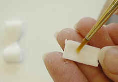 وبالكريمة دريم ويب او اي كريمة اخرى نمر على وسط كل وردة ونضع نقطة صغيرة (قلب الوردة او منطقة الرحيق