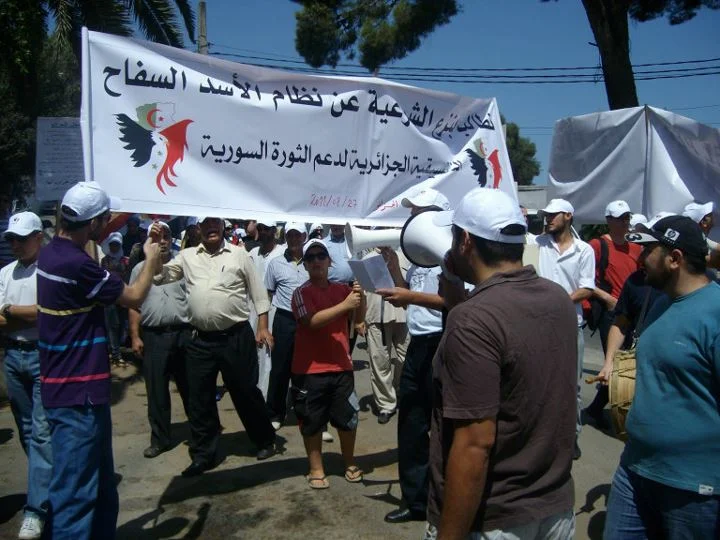 قامت الجالية السورية بمشاركة العديد من الأخوة الجزائريين في تاريخ 27/8 بوقفة إحتجاجية ومظاهرة حضارية أمام السفارة السورية في العاصمة الجزائرية في بن عكنون وبحضور بعض الصحفيين وقد قاموا بالتنديد بمجازر نظام الأسد السفاح