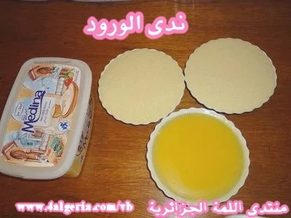 - 2 كیلات سمید رقیق ممسوحة ( وإذا كانت حبيباته خشنة نمرره في سيار لإزالة الحبيبات الخشنة )