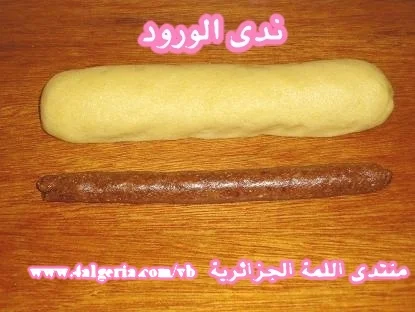 أولا نأخد العجینة نشكلھا على شكل حربوش(عصا)