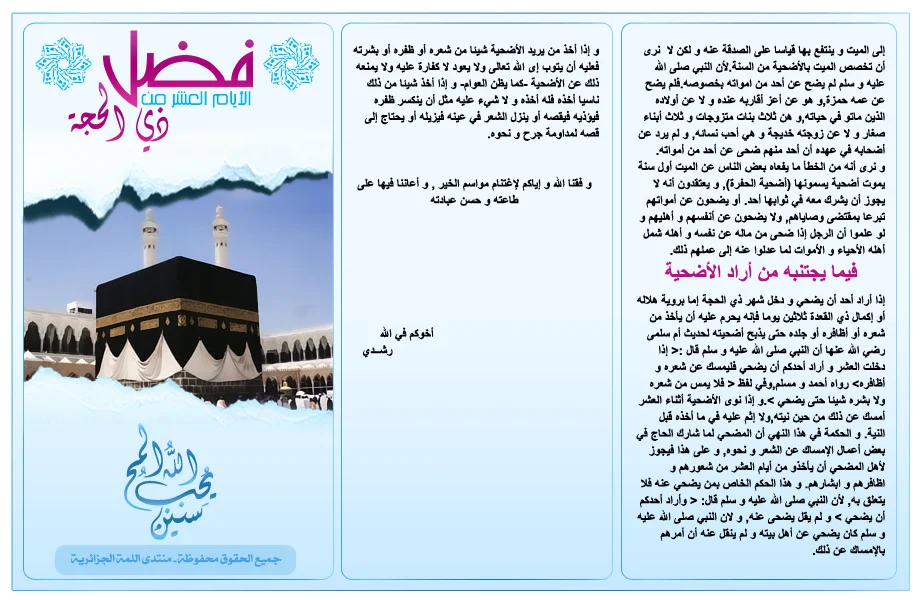 بمناسبة قدوم العشر لأيام من شهر ذي الحجة