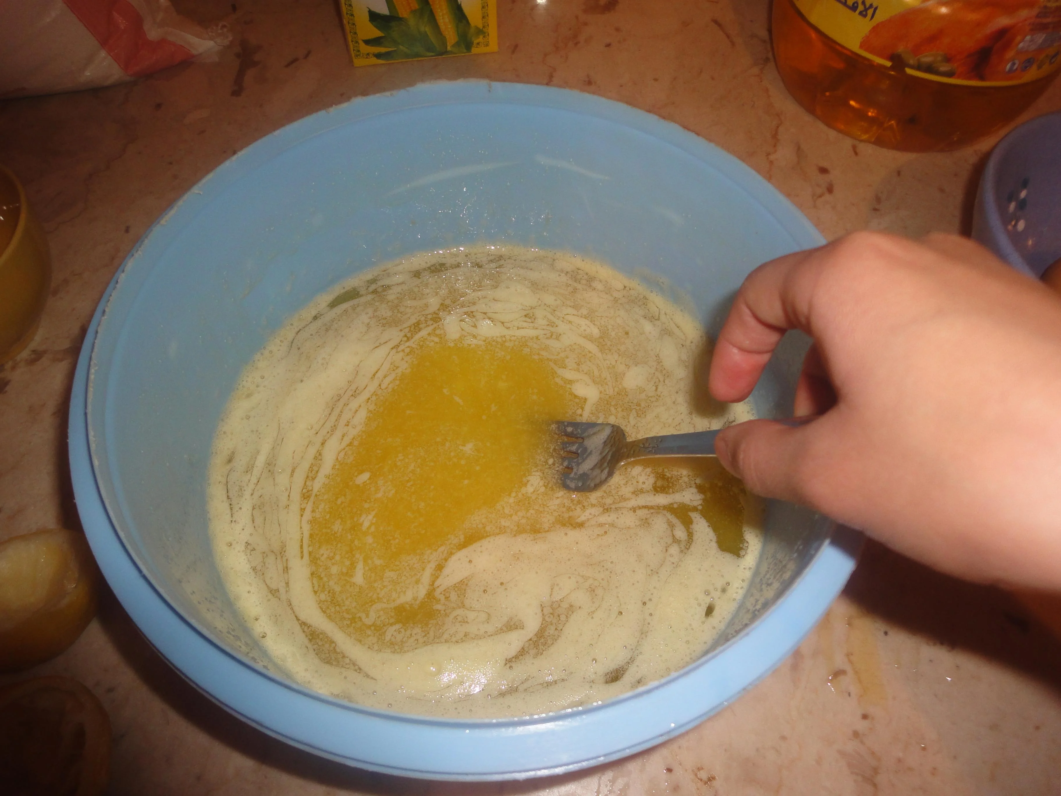 ضربت البيض مع االسكر حتى ذااب وزدت الزيت والزاست