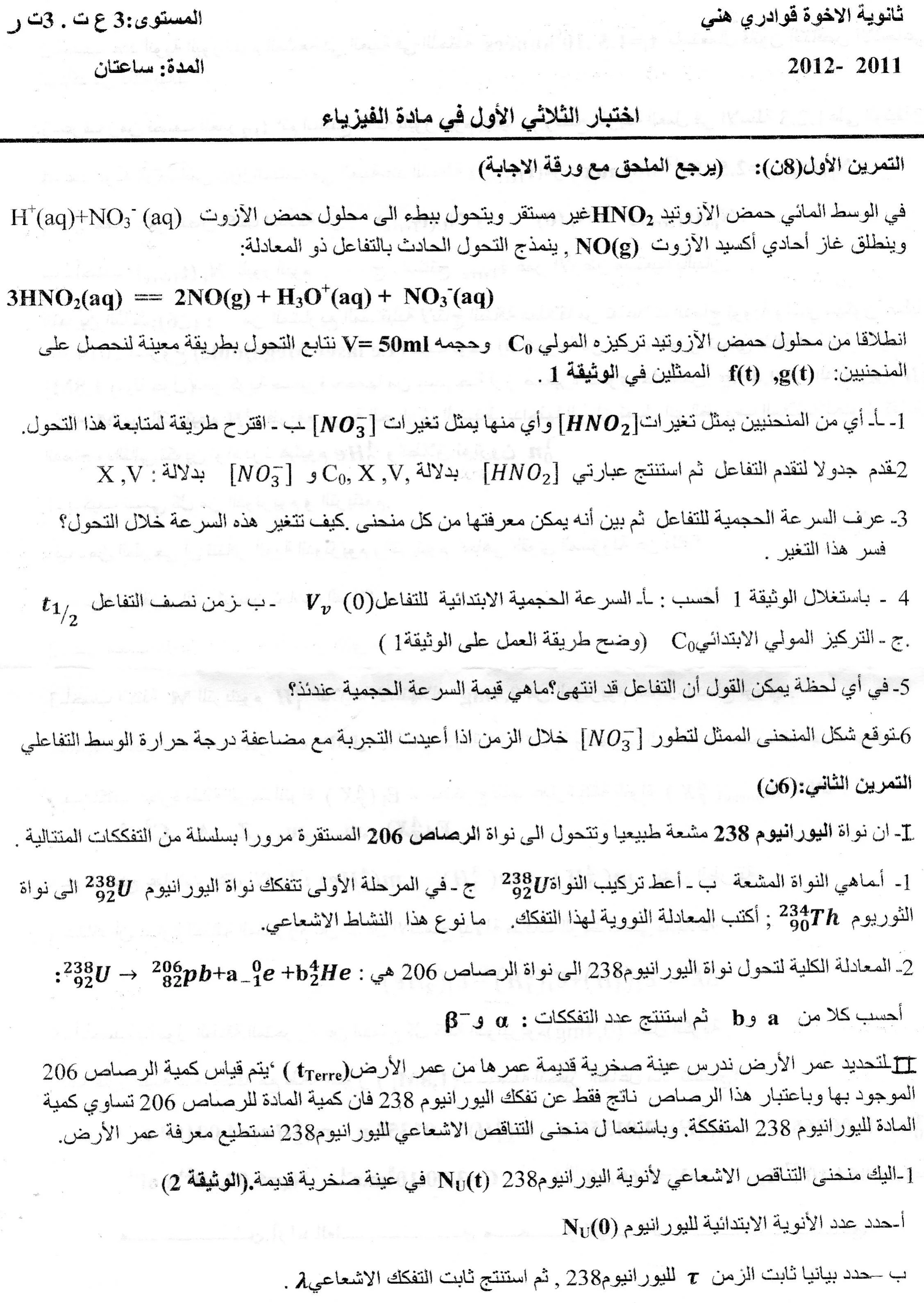 اختبار الفصل الاول في مادة العلوم الفيزيائية