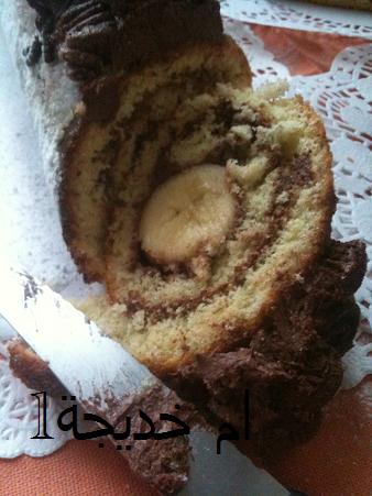 هنا دهنته بالكرام فراش شيكولاطة ووضعت حبتيين موز