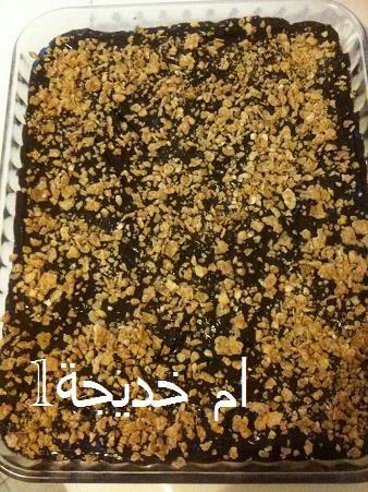ولما تضعي الشيكولاطة وترشي السير يال عليها ادخليها غطيها وادخليها الثلاجة لحين التقديم