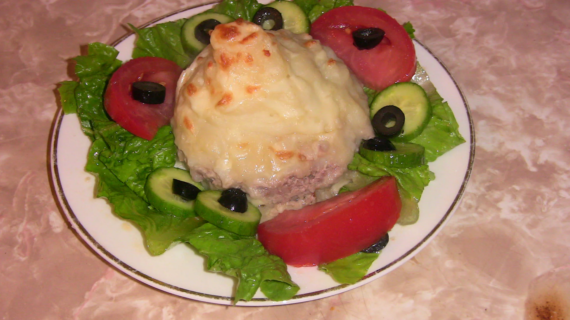 وبما انها كاملة فيها خضرة ونشويات بطاطا وبروتينات لحم فانا قدمتها كطبق رئيسي مع سلاطة للعشاء خفيفة وبنيييييييييييييييييينة بشهادة اطفالي هههههه