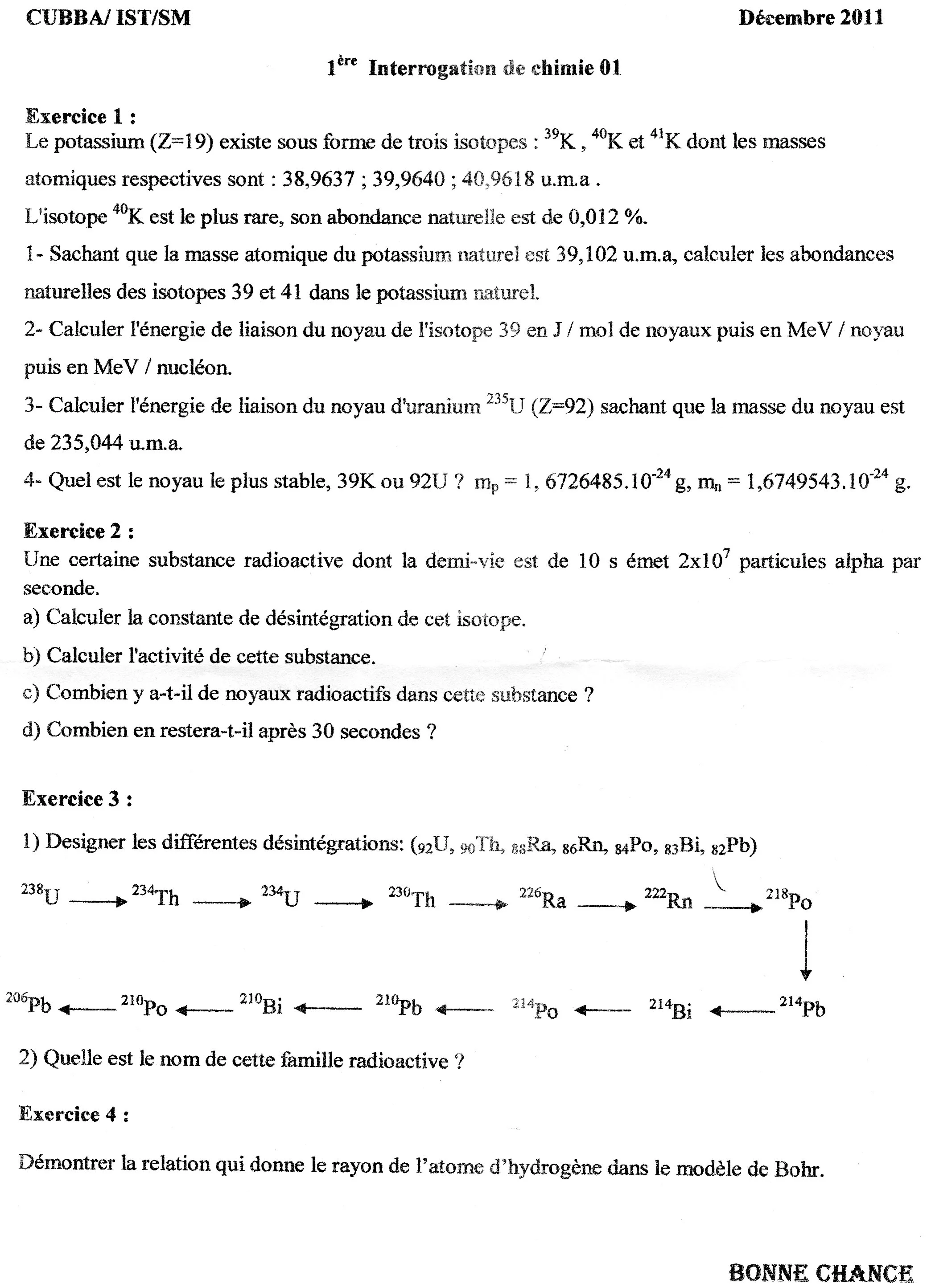 موضوع بسيط في مجمله كله يخص دروس الثالثة الثانوي ما عدا السؤال الأخير حول النموذج الذري