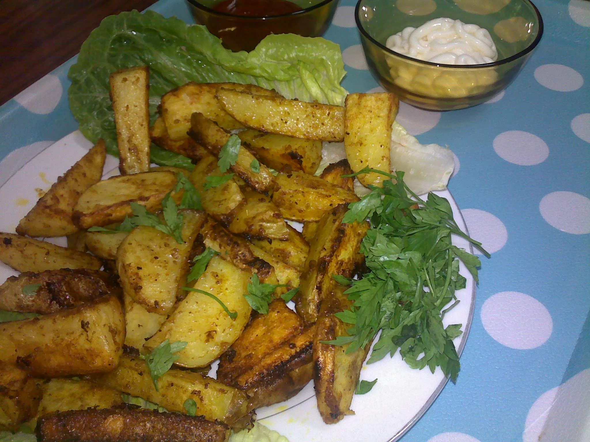 اولا نغسل البطاطا جيدا ثم نقطعها مثلثات صغار .ثم نحضرولها الخليط اللي نحطوها فيه .وهو كاس زيت الزيتون.مغرف صغيرملح .نصف مغرف بهارات.نصف مغرف صغيرعكري.ونحطو هديك البطاطا والخلطة في كيس ونرجوها مليح.
