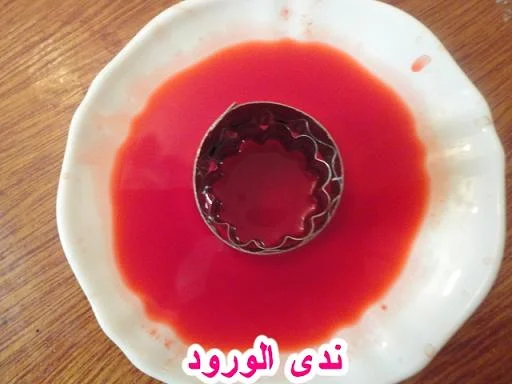 نأخد صحن صغير نضع فيه ملون غذائي حسب الذوق أنا هنا إستخدمت اللون الأحمر