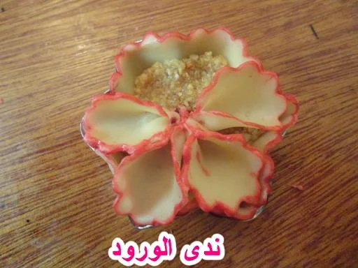 نزين الوسط بالوردة وهذا هو الشكل النهائي للحلوى