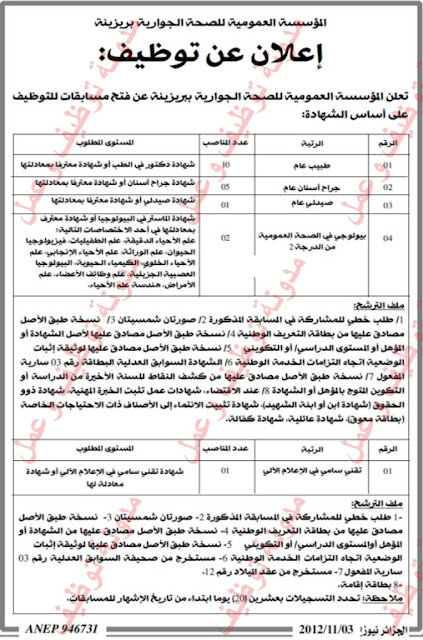 وأذكر أن الكثير من عروض التوظيف لشهر اكتوبر تبقى سارية المفعول لذلك تصفحو أيضا الموضوع السابق