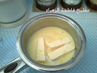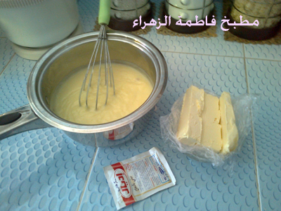 نجهز الكريما نخلط الزبدة مع كريم بتسير والفاني