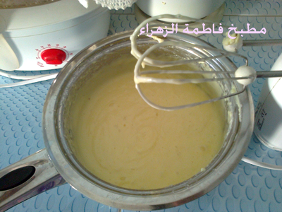 ونخلط بالخلاط كهربائي حتى يتضاعف حجم الكريما