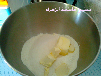 نضع كل المكونات في اناء معاد البيض ونفرك