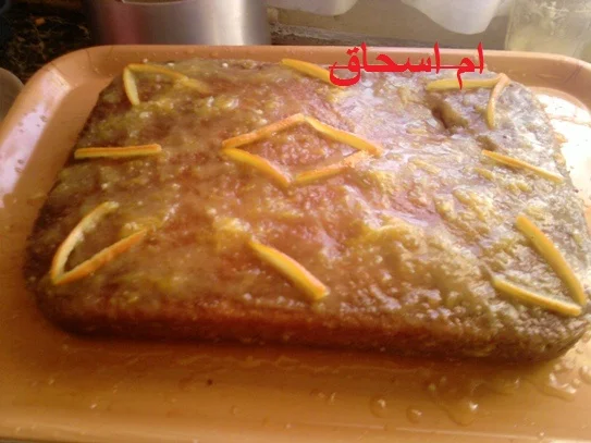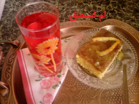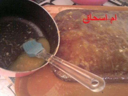 وعندما تخرج الكيكة نتركها تبرد ثم نسقيها بالبنسو بشوي بشوي حتى نكملو الكمية كاملة