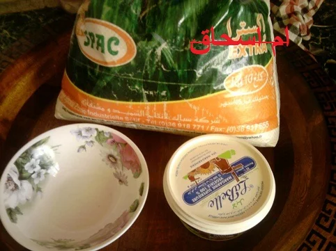 سميد متوسط ...3كيلات +كيلة مارغرين لابال دايبة +ربع كاس زيت +شوي ملح