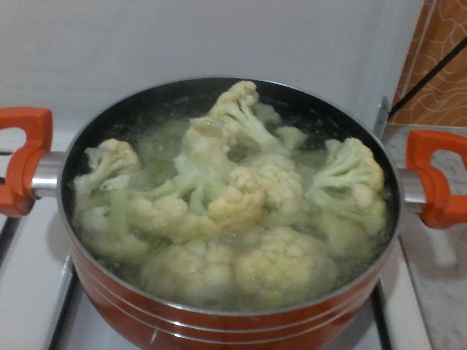 نطهى الشيفلور فى الماء والملح نصف طياب ونضعه جانبا فى طنجرة​