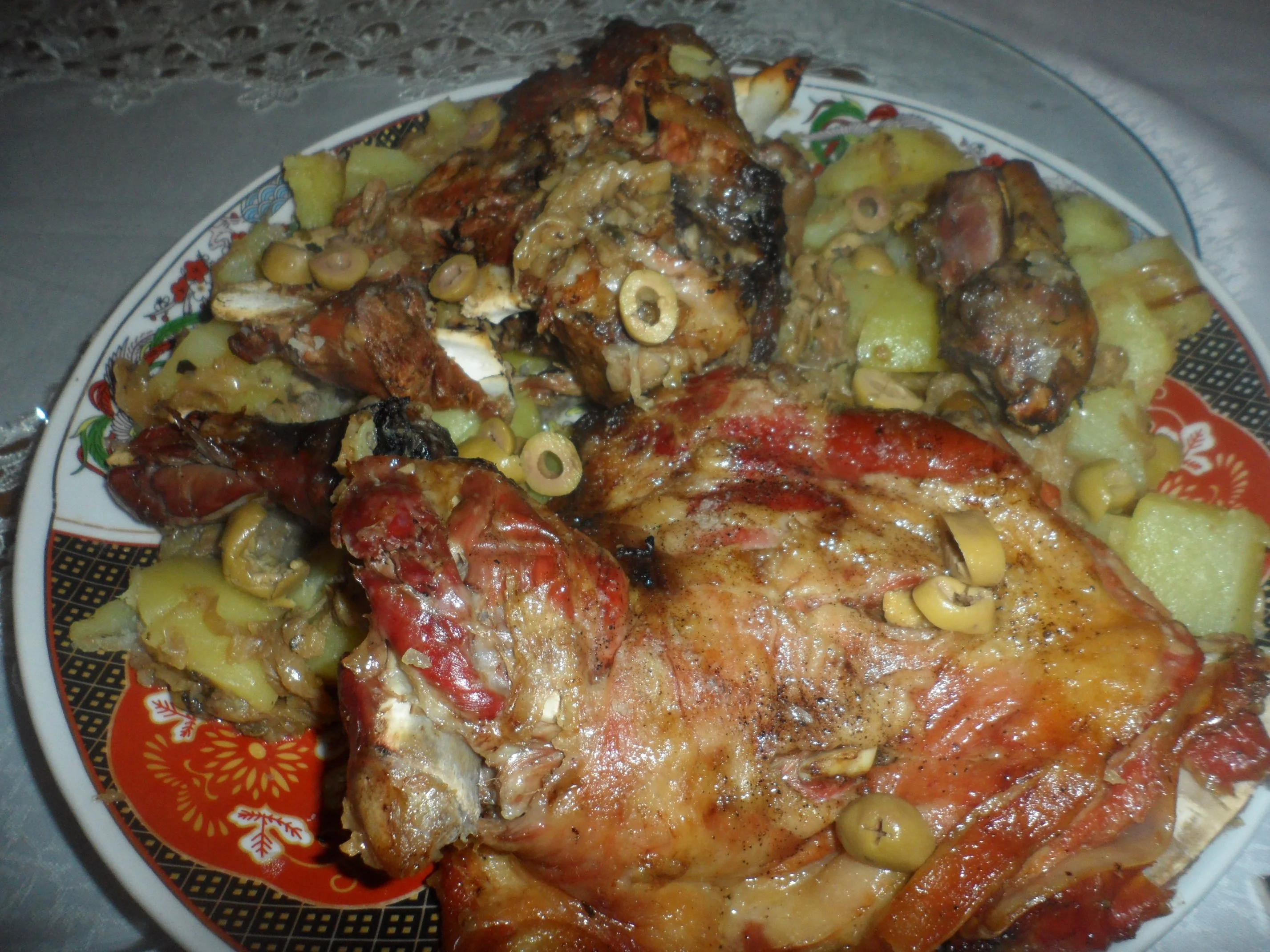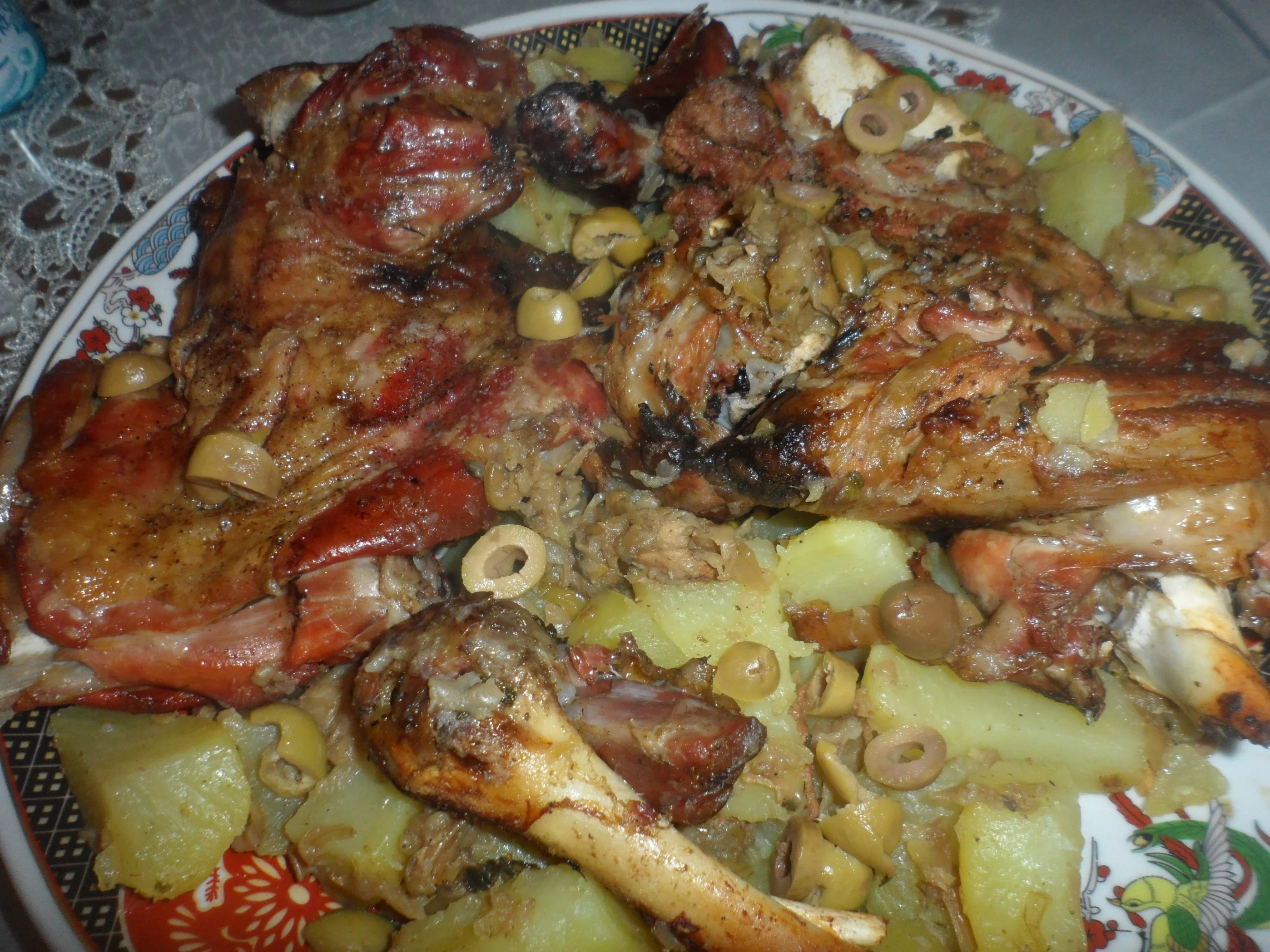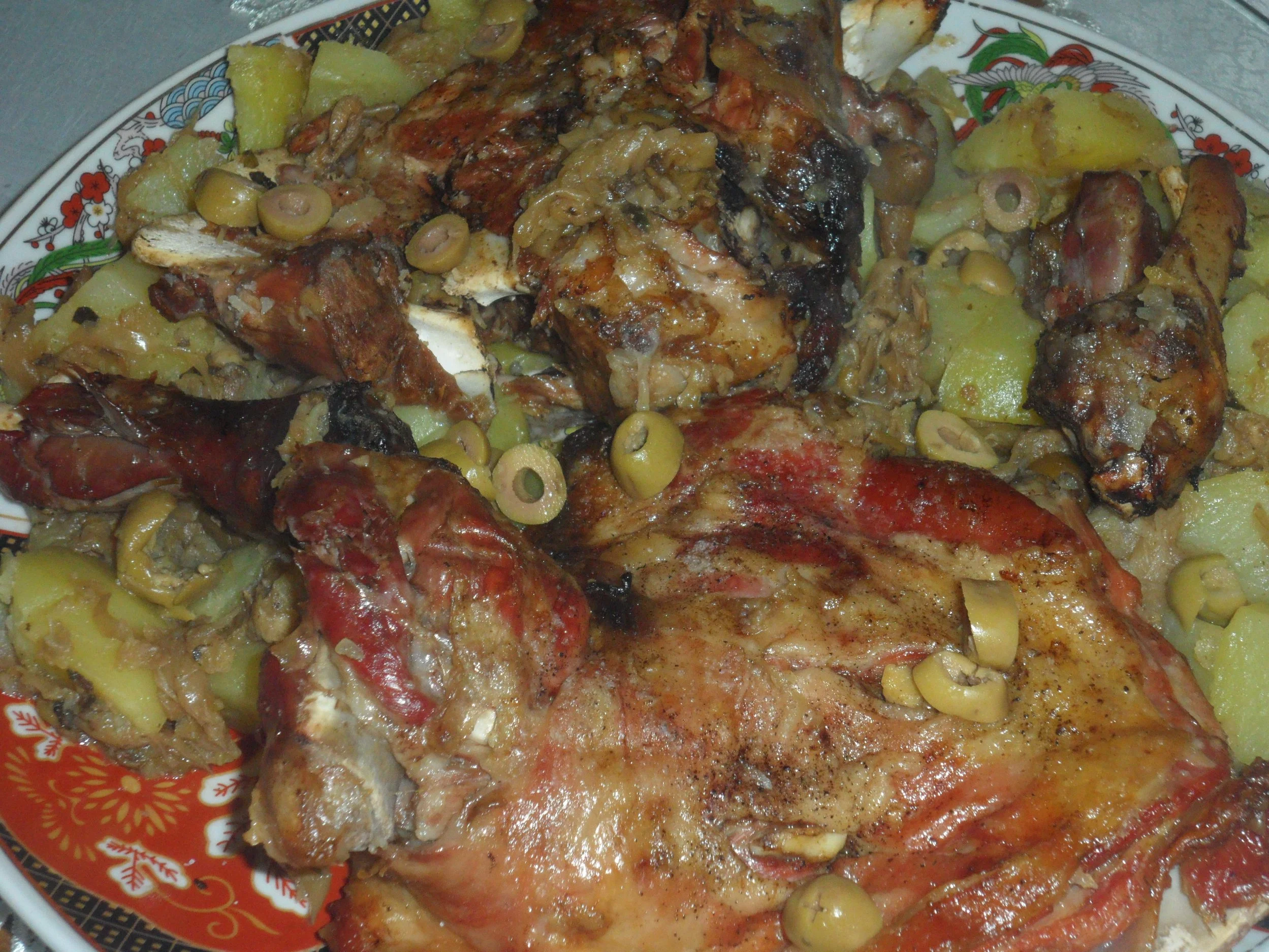 عندما يفورو اضيفي بطاطا و زيتون اخضر ولما تطيب انزعيه وحمريه في الفرن ( الكوشة )
