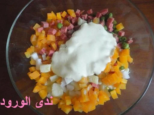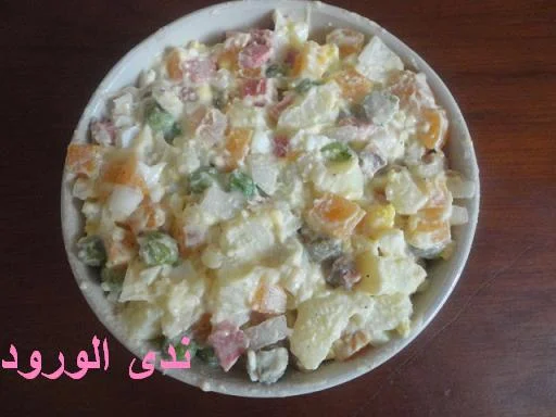 سلطة لذيذة وغنية بمكوناتها هي تشبه قليلا لسلطة الماسيدوان الفرنسية