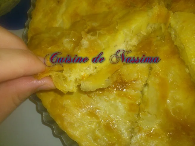 ***نحلو العجينة كيما البقلاوة طبقات او ندهنو بيناتهم بالمرغرين انا درت 5طبقات من التحت امبعد ت العقدة مبعد زدت 3طبقات من الفوق دهنتو بالبيض باش تتحمر او دخليها للفور