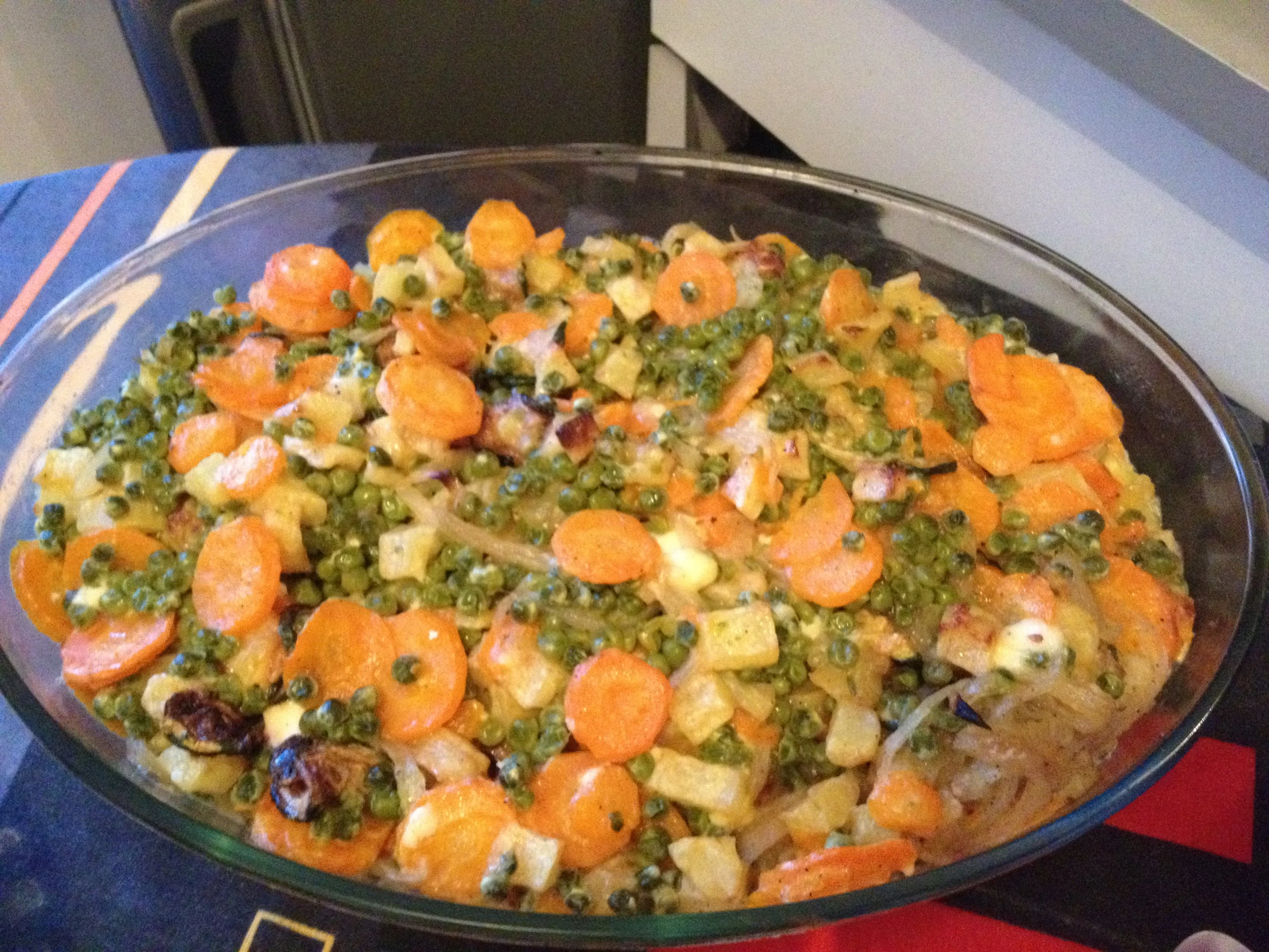 بطاطة مقلية+قرعة مقليةثم فوري الزرودية+الجلبانة+(قلي 2 حبات بصل مشلطين+1الى 2 رند+فلفل اكحل ملح زيت قليه مليح حى اولي معسل ثم ديري 4 بيض دربيهم مع فرماج حب ملح خلطي كلش الخضرة البصل+البيض ديريه في الكوشة حتى ينشف البيض