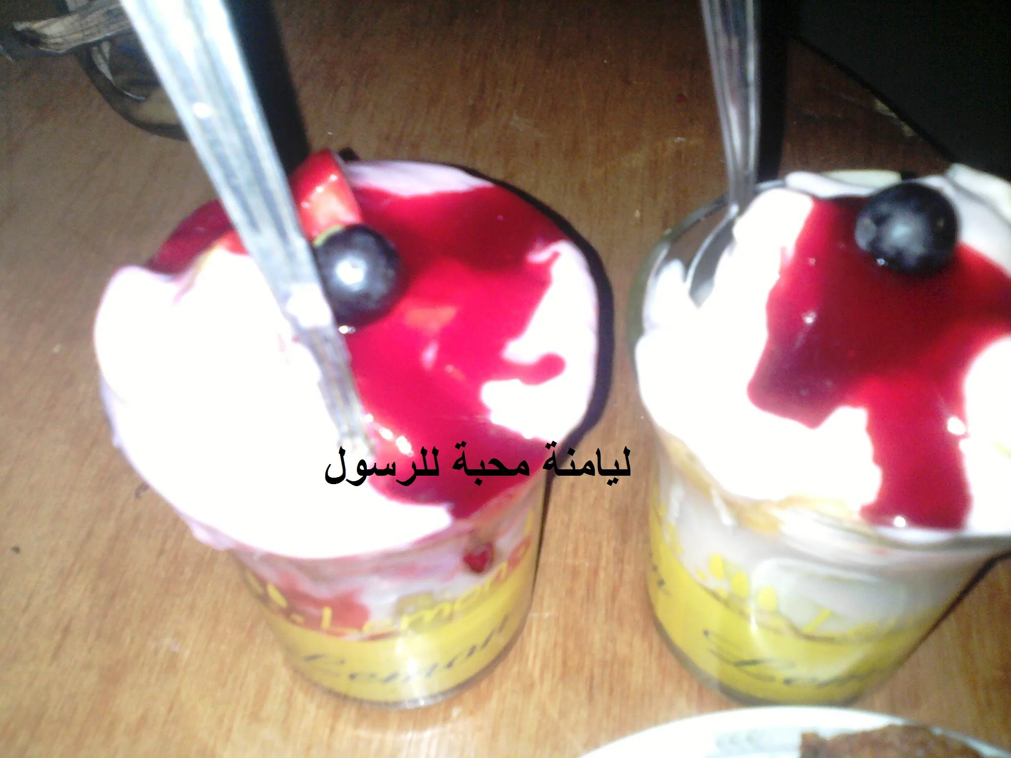 لكل كاس باطة ياؤورت بالدوق الي حبيتوه +تفاح طبعا +عسل +كونفيتير المشماش+ملون احمر