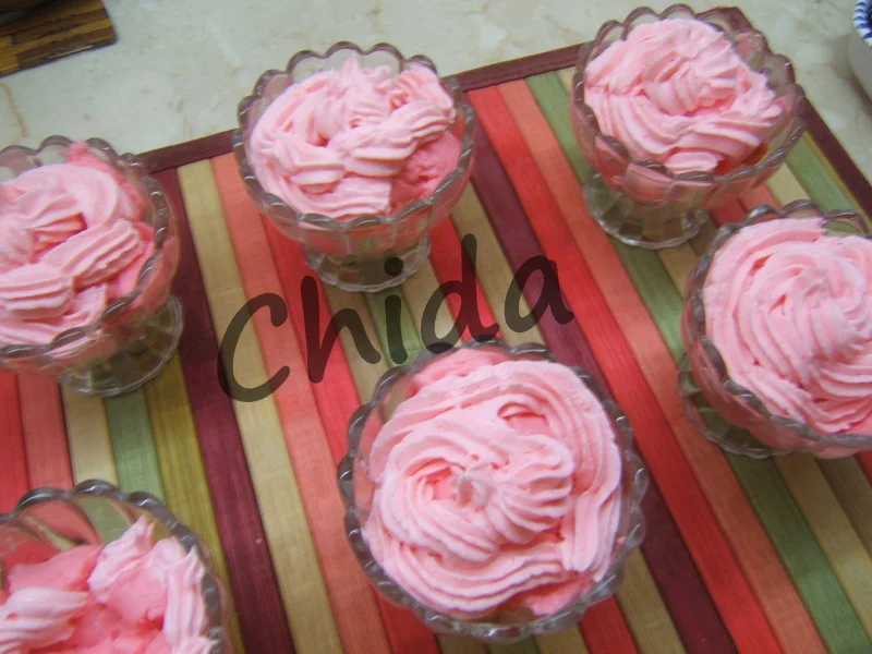 4- la crème chantilly du fraise (Fraises أ la crأ¨me fouettأ©e (facile, rapide) - Une recette CuisineAZ / ou achetez poudre et mélangez avec le lit)