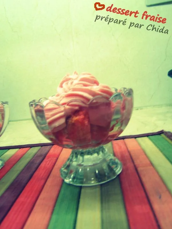 salut à tout le monde :regards01: , c'est la premiere fois je met une recette dans cet parti de forum , bon j'ai préparé un dessert de fraise mais malheureusement j'ai pas trouvé les fraises