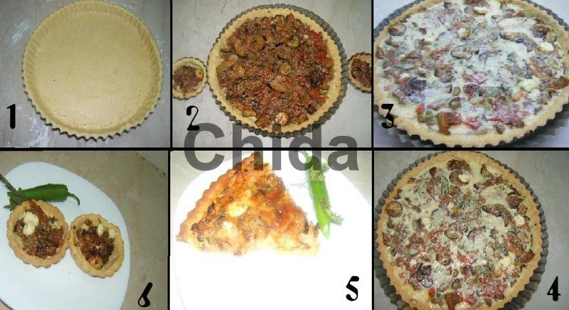 1-عجنة البريزي المالحة: 250غ فرينة+125غ زبدة طرية+ماء بارد+ملح و فلفل أسود.