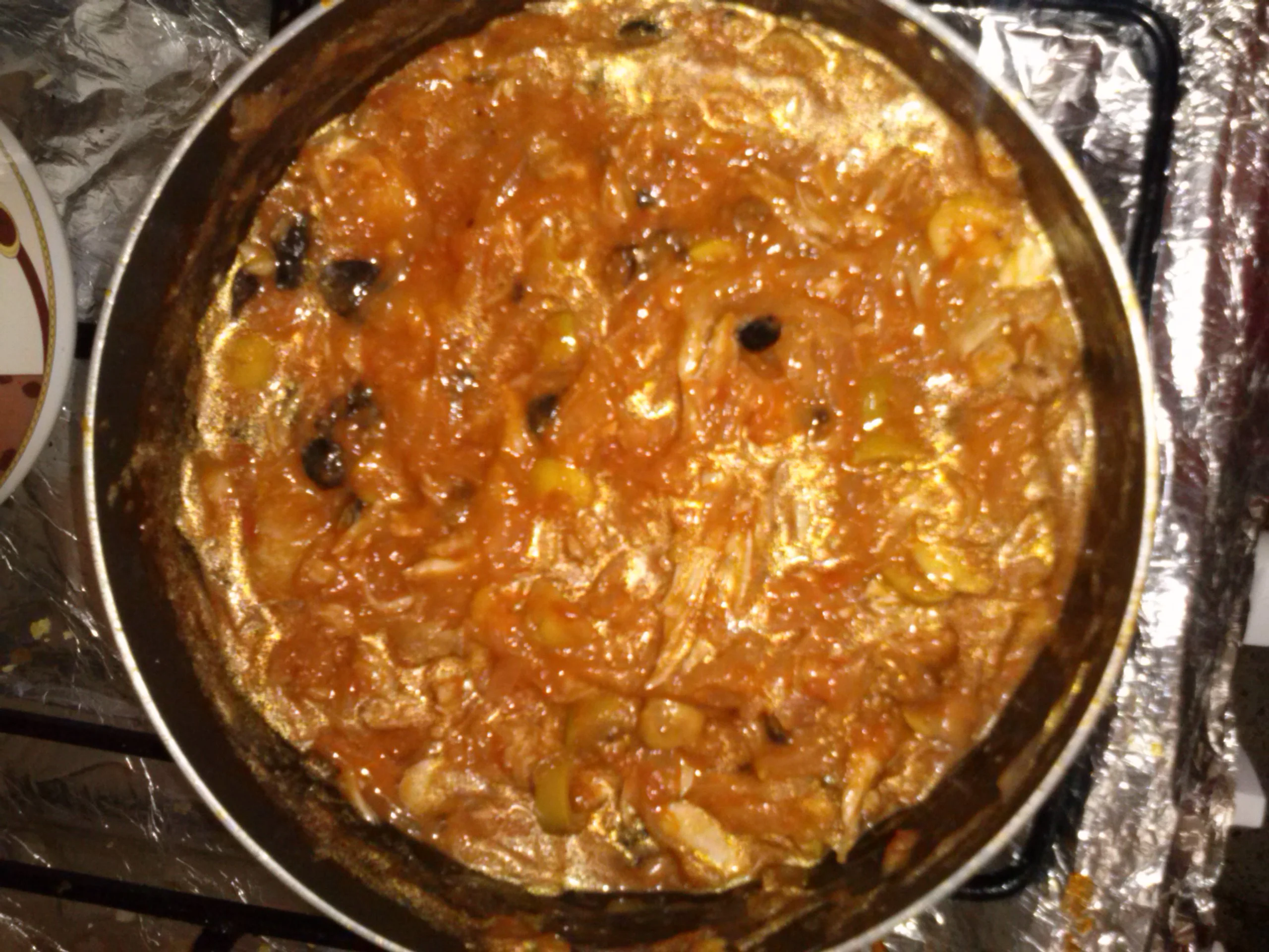 المقادير الحشو واش عندك جاج 3بصل مقطع طويل 3طماطم مرابية ملعقة كبيرة طماطم مصرة زيت ملح فلفل أسود عكري شوية قرفة راس الحانوت زيتون أسود مقطع زيتون بلاغظم مقطع فرماج