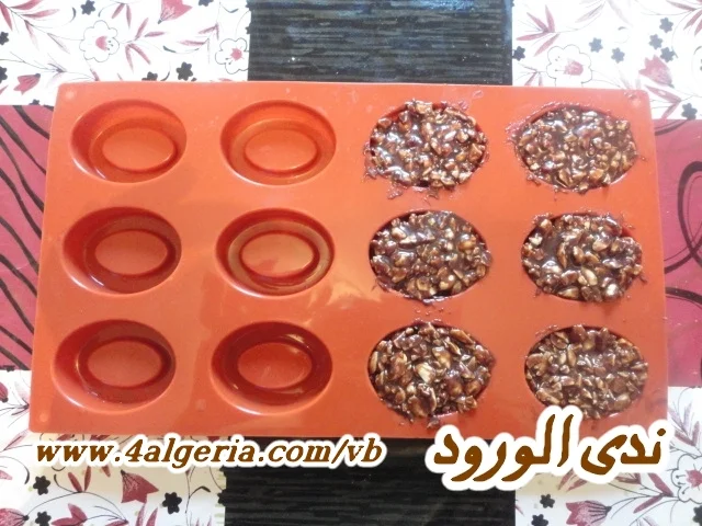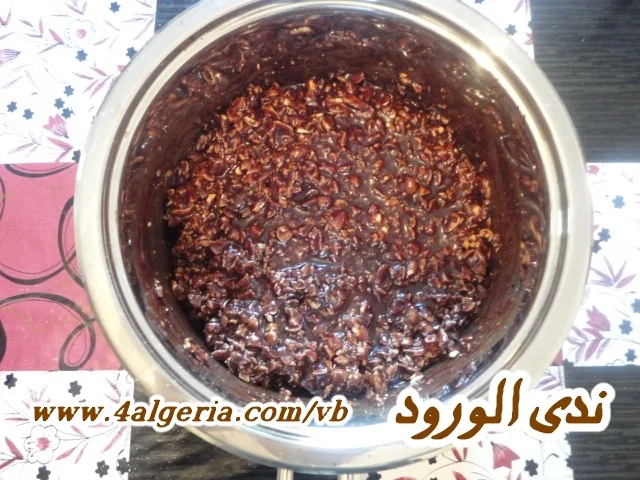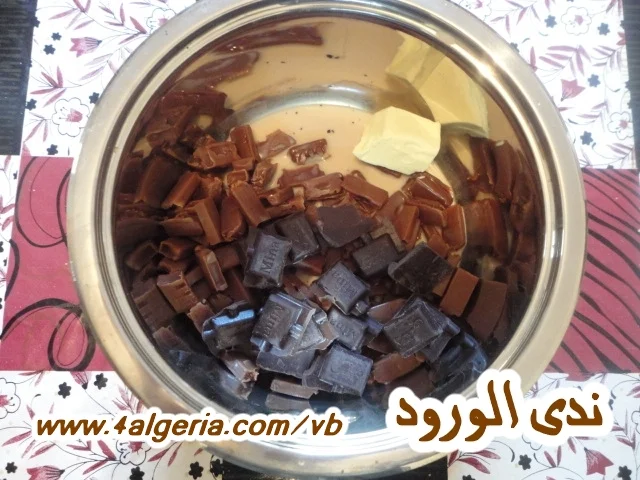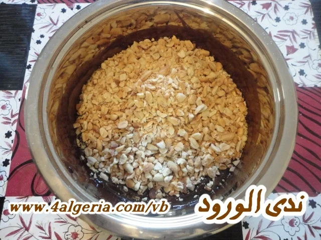 نزيلها من على النار ونضيف لها الكاوكاو المكسر ونخلط