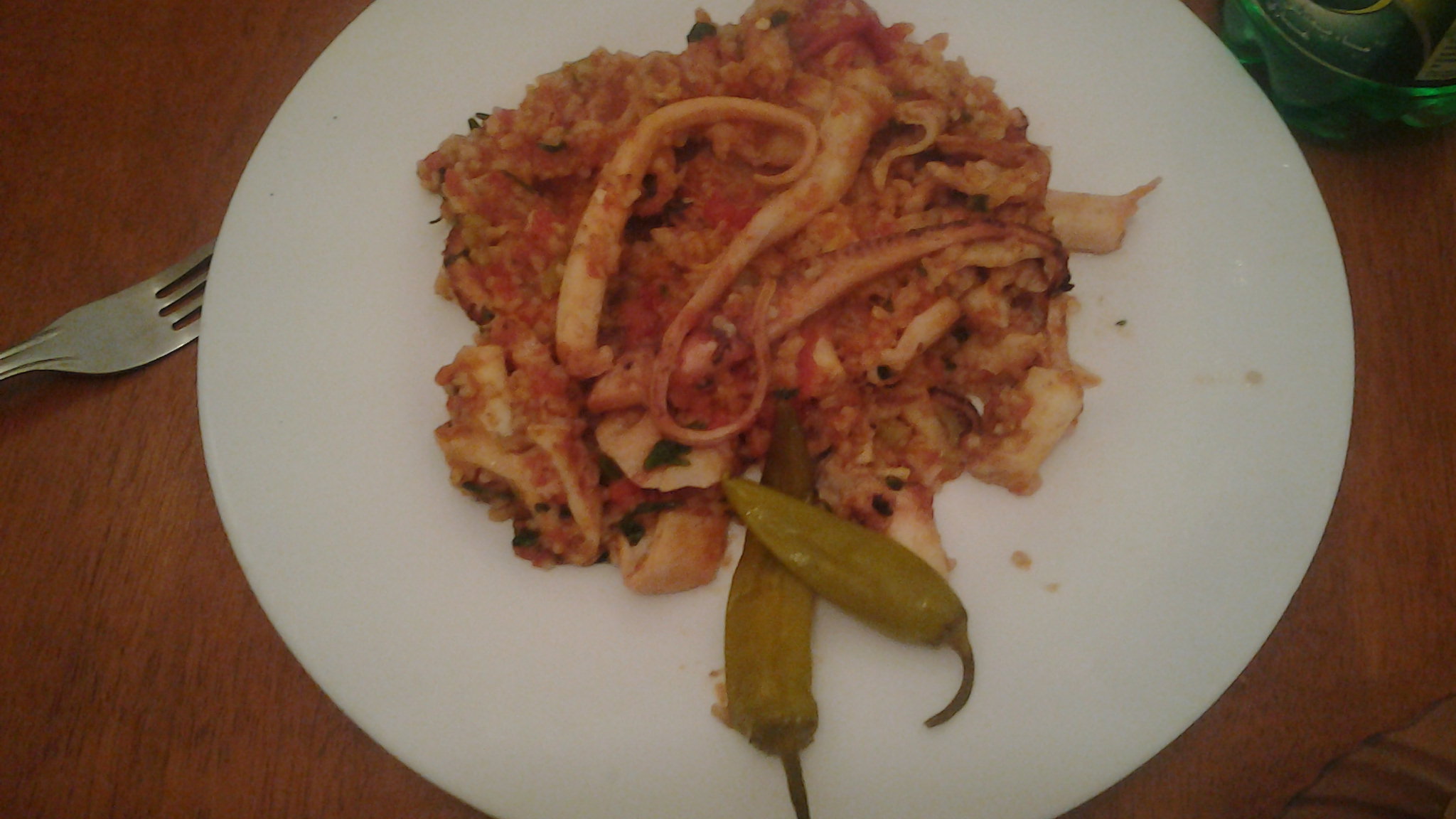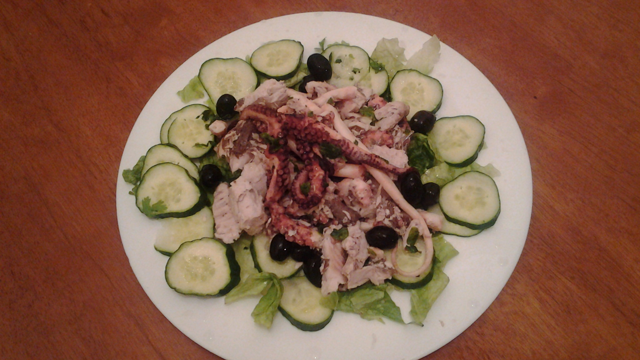 الحمدالله طلعوا صور هذا طبق اليوم ارز مع الاخطبوط وايضا سلطة سمك مبخر فيه سلمون والاخطبوط والتونة ان شاءالله يعجبكم