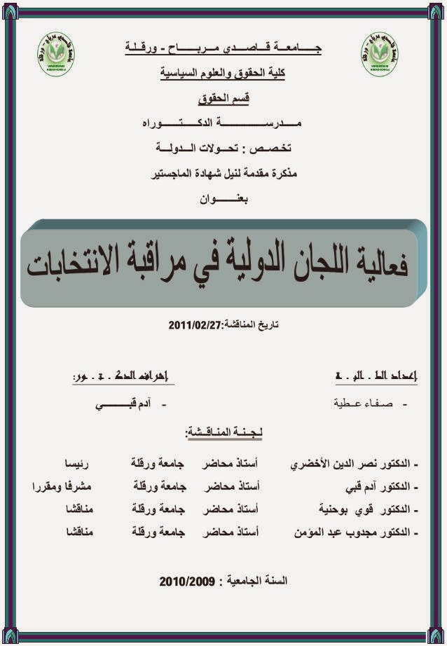 - العنوان: فعالية اللجان الدولية في مراقبة الإنتخابات.