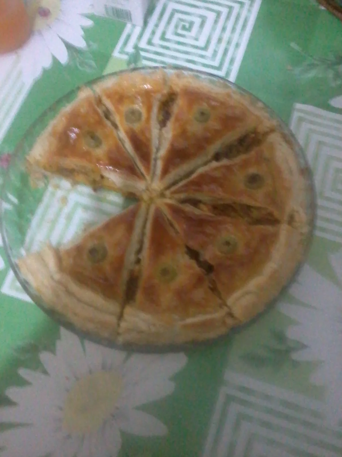 و التورت عملتها بالعجينة المورقة المنزلية و اللحم المرحي و الشانبينون و الفرماج